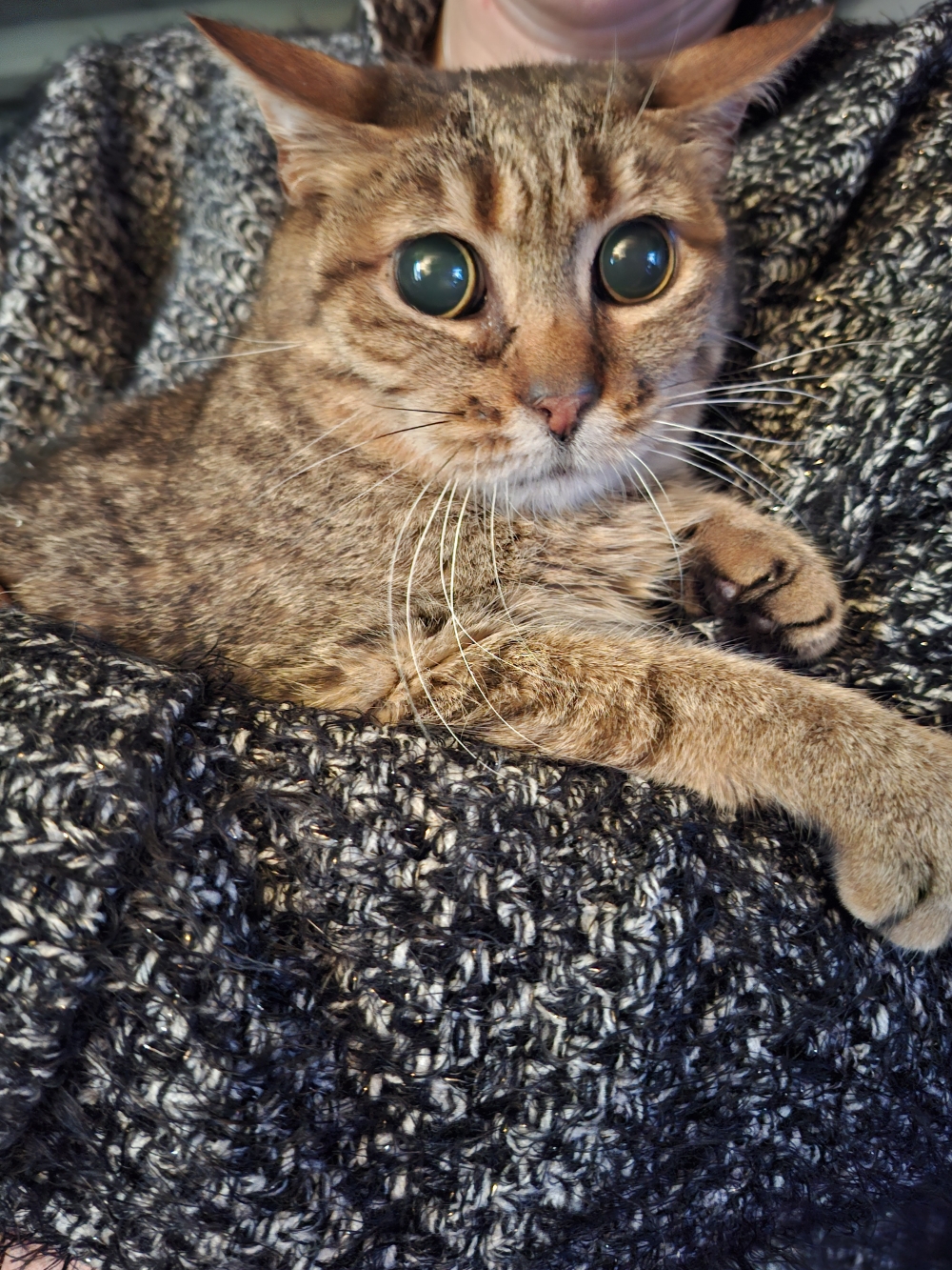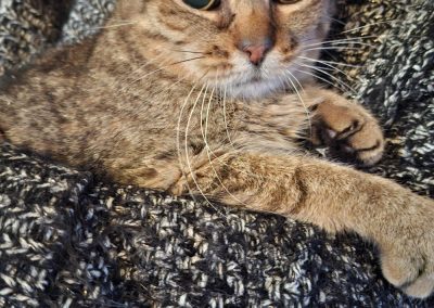Je m’appelle Pumshkin, je suis une dame âgée de 11 ans qui a toujours vécu par tous les temps dehors, sans câlin et pas toujours nourrie à ma faim, j’ai perdu la vue mais je sais très bien me diriger. L’association m’a prise sous son aile afin de me trouver une adorable famille qui m’offira une belle fin de vie. J’adore me blottir contre les humains gentils et ronronner de bonheur.