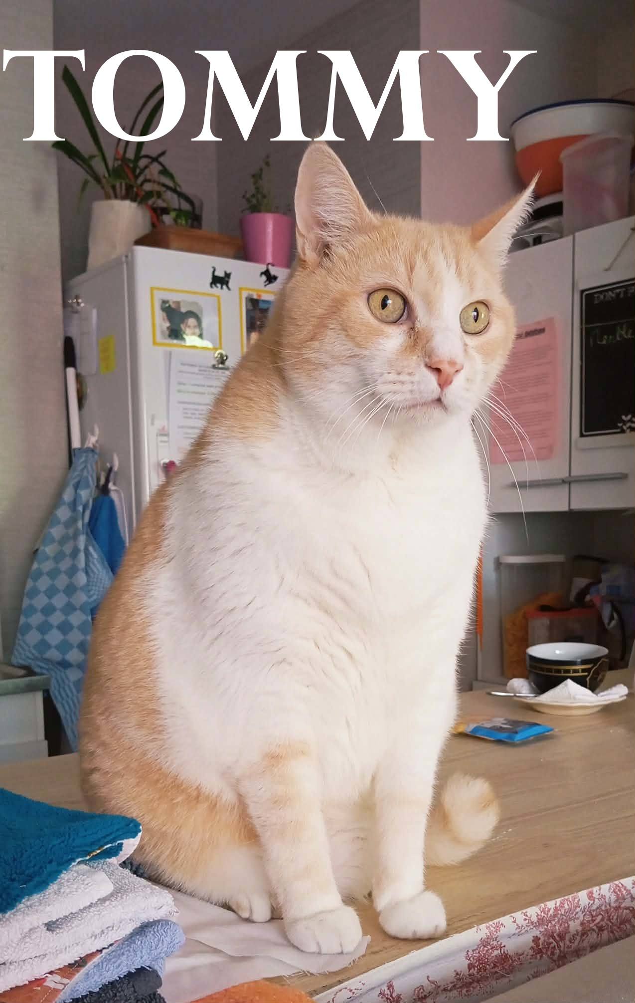 Je m’appelle Tomy. Je suis un chat adorable, calme, câlin, doux, affectueux. Ma maîtresse est partie en Ehpad et je me retrouve sans foyer. J’ai 11 ans et suis en parfaite santé. Un bilan sanguin a été effectué et j’ai des analyses de jeune homme. Je m’entends bien avec les autres chats. Bref, je suis un chat épatant, une bonne pâte de chat. Si vous souhaitez me rendre visite, merci d’envoyer un SMS au 06 37 57 04 11, en donnant quelques informations sur votre foyer.